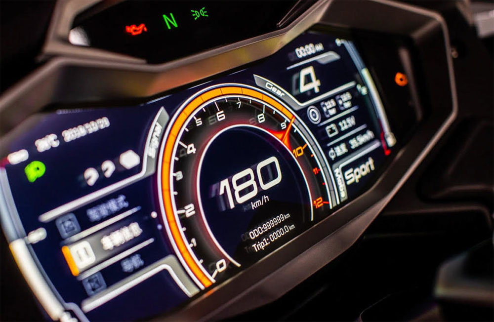 En la pantalla, se muestra muchísima información, como ser controles multimedia, acceso a la configuración de la moto, múltiples modos de conducción, seteos de suspensión, indicador de presión de neumáticos, etc. Además, cuenta con parabrisas regulable eléctricamente y asientos calefaccionados.