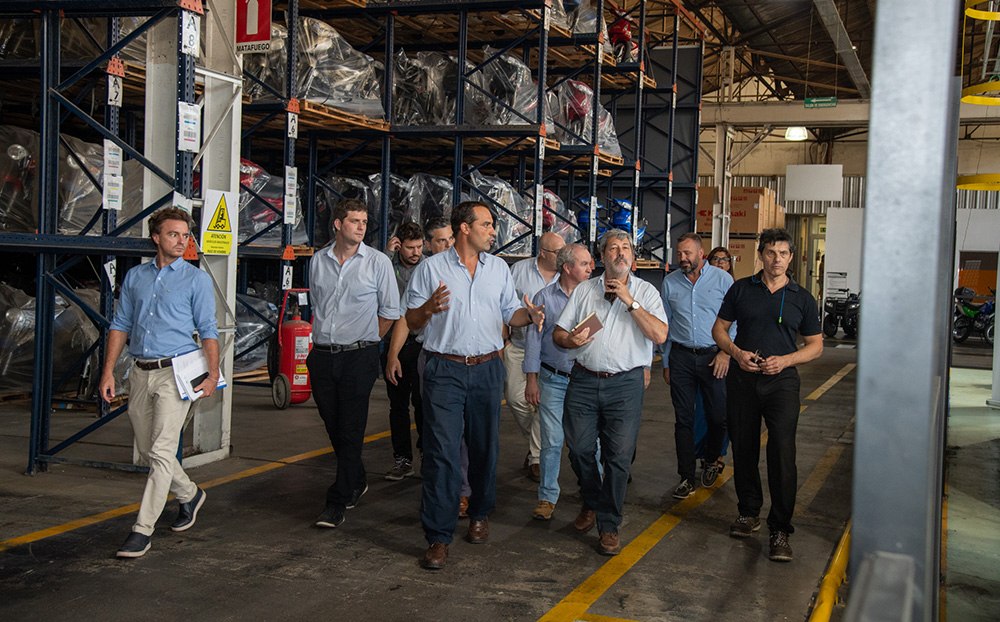 El Secretario de Industria, Claudio Mossuz; el Director de Infraestructura y Promoción Industrial Marcelo Cogno; el Secretario de Comercio Exterior German Burcher, y Lucas Candioti, Sub Secretario de Comercio Exterior y Nuevas tecnologías de la Provincia de Santa Fe, recorrieron la planta de producción y ensamble de motocicletas y partes, preocupados por promover la industria, el desarrollo de nuevas tecnologías que generen valor agregado y la exportación de productos argentinos al mundo.