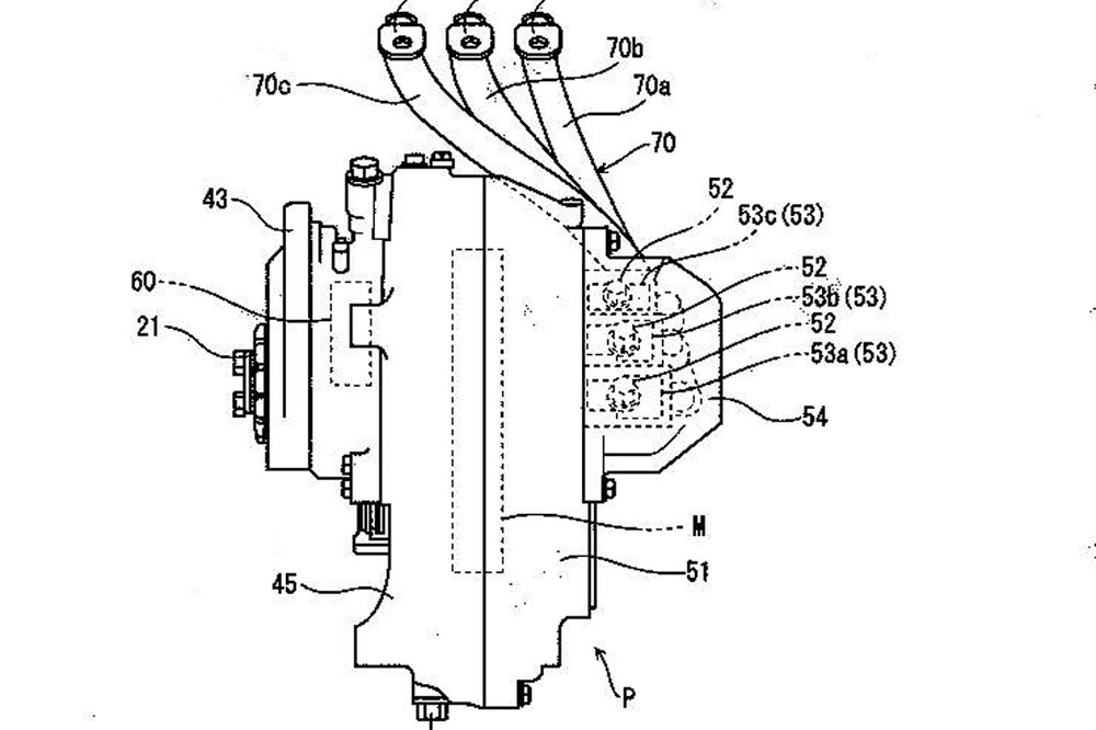 Yendo a la moto en sí, el corazón corresponde a un pequeño y por ende liviano motor eléctrico. La pauta que deja ver que estamos frente a un pequeño motor, lo dan algunas de las partes que se ven en los diseños. Si nos fijamos en el tamaño de la rueda dentada de la unidad (arriba) casi se puede visualizar el tamaño del motor terminado, poniéndolo sobre el tamaño de un plato de comida. De hecho, todo el motor es extremadamente estrecho, lo que lo hace fácil de colocar en el angosto chasis de esta Honda 125.