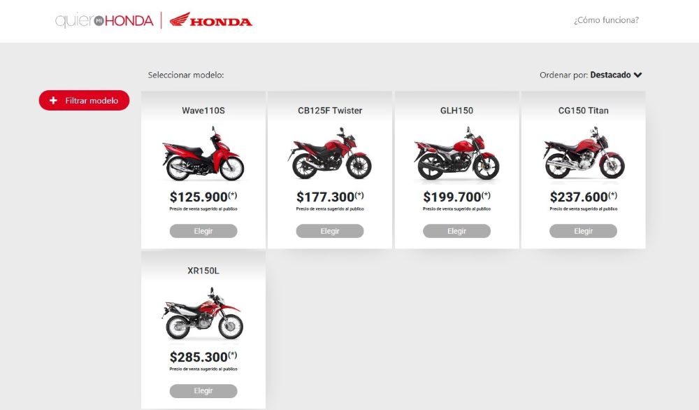 Accediendo al sitio web www.quieromihonda.com.ar los usuarios ya pueden navegar entre los diferentes modelos de motos y elegir los colores y versiones disponibles. Cuando el interesado deje sus datos, serán contactados de inmediato por el concesionario que seleccionen para asesorarlos en su compra.