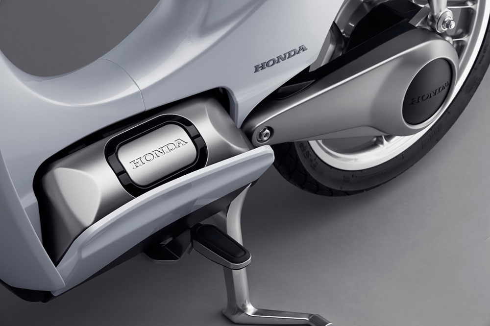 Lo destacable de este modelo es el sistema de almacenamiento de las baterías. Como es sabido, la mayoría de motos eléctricas, utilizan el lugar bajo el asiento para almacenar la batería. Sin embargo, en este diseño Honda optó por un sistema diferente, ya que esta Super Cub eléctrica utiliza un compartimento separado en el lateral para ubicar la batería. De esta manera, el conductor sólo tendría que abrir la tapa de acceso en el lateral para cargarla. Esto hace pensar que estaríamos frente a una batería extraíble, lo que haría mucho más sencilla su carga, permitiendo al usuario llevarla consigo dentro de su oficina, por ejemplo, para recargarla; o bien intercambiarla con otra sin necesidad de tener que esperar que se cumpla la carga.