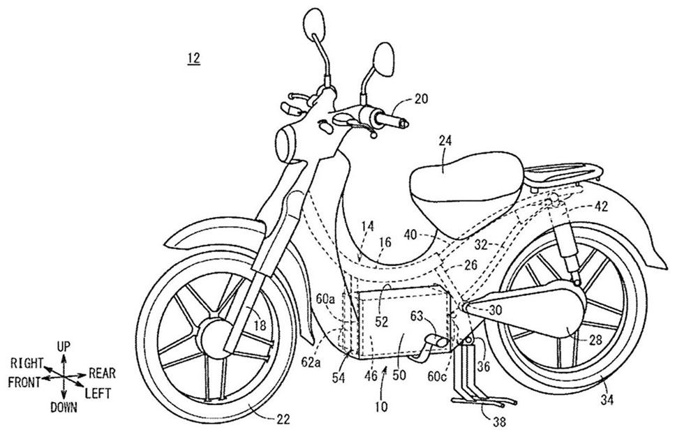 Si bien de las patentes que trascendieron no surge el modelo de la moto, las imágenes dejan ver claramente que estamos frente al prototipo EV-Cub de Honda; lo que se refuerza al ver que de los dibujos surge el método de remoción de baterías ya mostrado por Honda.