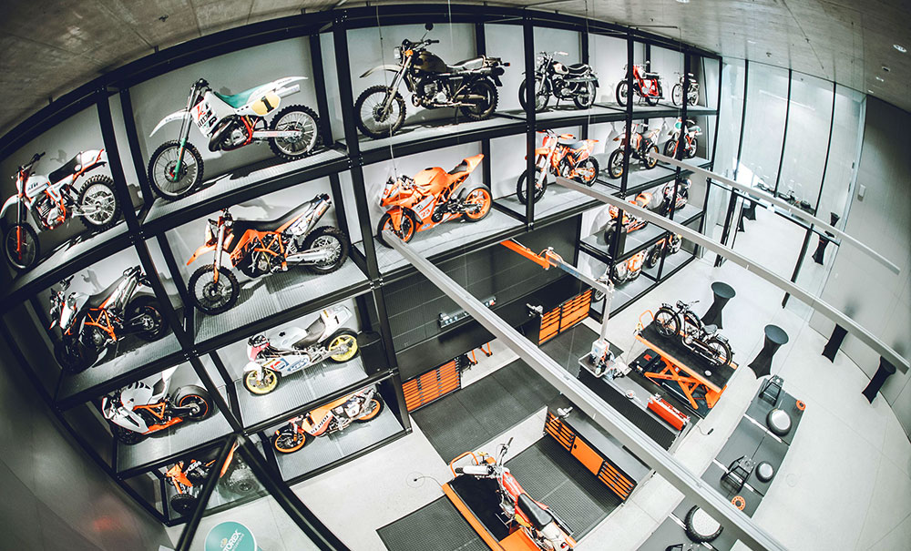 El museo oficial de KTM, de características súper modernas, está ubicado en el centro de Mattighofen, Austria; un lugar muy especial para la compañía, debido a que se encuentra muy cerca del lugar donde se fabricó la primer moto KTM de serie allá por 1953.