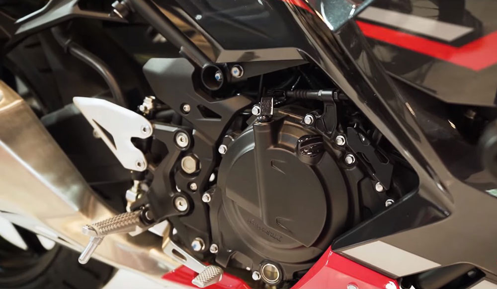 El motor es un bicilíndrico de 249 cc, refrigerado por líquido. A pesar del desplazamiento más pequeño en comparación con el Ninja 300, la entrega de potencia del Ninja 250 está a la par con su hermano de 300cc. El motor entrega 40 hp a 12.500 rpm y 23.5 Nm de torque a 10.000rpm.
