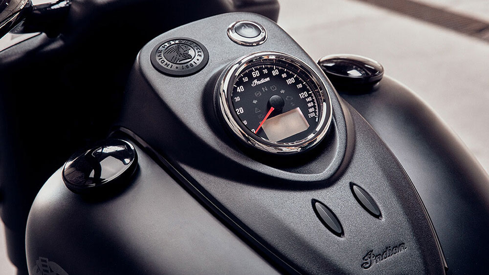 En lo que hace al equipamiento y más precisamente a la electrónica, esta Chief Dark Horse ofrece 3 modos de conducción: Tour, Estándar y Deportivo. Cuenta además como elemento de confort para la conducción, la desactivación automática del cilindro trasero, que resulta ideal para situaciones de tránsito lento, ya que ayuda a que el piloto no sienta tanto el calor del motor. Y para disfrutar aún más de los viajes largos, la Dark Horse viene equipada con control de crucero y arranque sin llave.