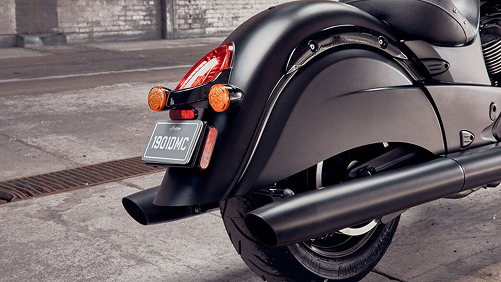 La Indian Chief Dark Horse viene equipada con el motor Thunder Stroke 111 V-Twin, una planta impulsora que ha sido premiada y que le otorga un torque excepcional en cada marcha. Resalta su doble escape en color negro mate al estilo Indian, que ofrece un sonido grave y robusto. El estilo se combina con detalles en negro brillante de primerísima calidad que realzan la estética del motor.