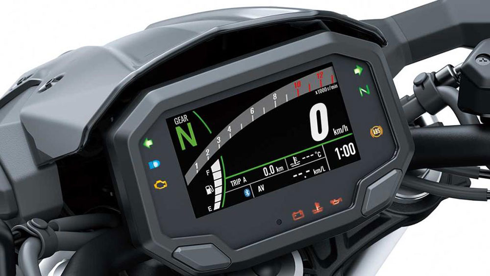 Entre los detalles más destacables de la versión 2020 de la Z650, se encuentra su nueva instrumentación digital, compuesta de una pantalla TFT de 11 cm de largo, siendo este modelo el primero en su categoría en utilizarla. Esta pantalla adapta su brillo de manera automática según la luz del ambiente y puede seleccionarse entre dos opciones de color de pantalla, con fondo blanco o negro, que mejoran su lectura tanto de día como de noche. Dispone de una buena cantidad de información, como velocidad, tacómetro, marcha engranada e indicador de momento de cambio, nivel de combustible, odómetro con dos parciales, consumo, autonomía, velocidad media, tiempo de uso, temperatura de refrigerante, reloj, voltaje de la batería, indicador de conducción económica y aviso de servicio. A esto se suma la nueva conectividad vía bluetooth para smartphones con la aplicación Rideology, que incluye información de la moto, programa de mantenimiento, rutas por GPS, entre otras prestaciones.