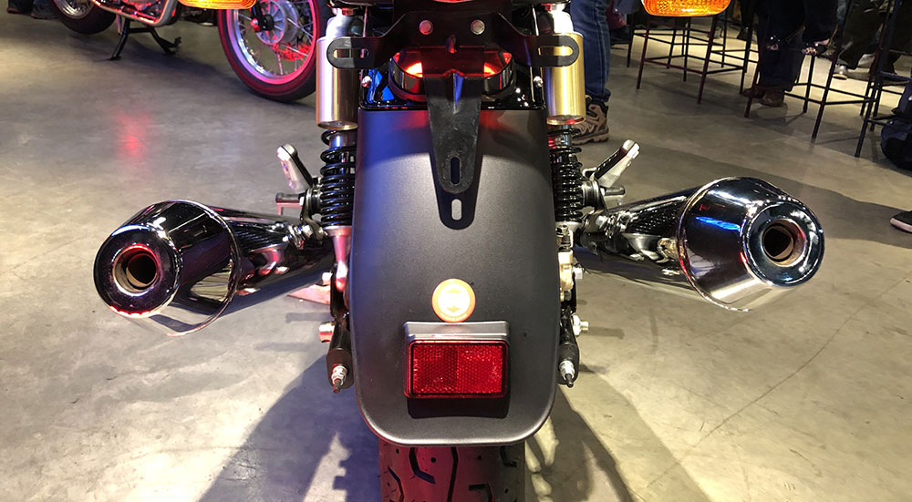 El asiento es doble como para poder llevar acompañante. Sus manillares reforzados, evocan el estilo Scrambler que surgió en los años 60 en California. Debido a su cómoda posición de conducción, resulta divertida y práctica para todo tipo de terreno. Incluso sus escapes elevados le permiten tomar curvas con seguridad sin que exista posibilidad que rocen el suelo.