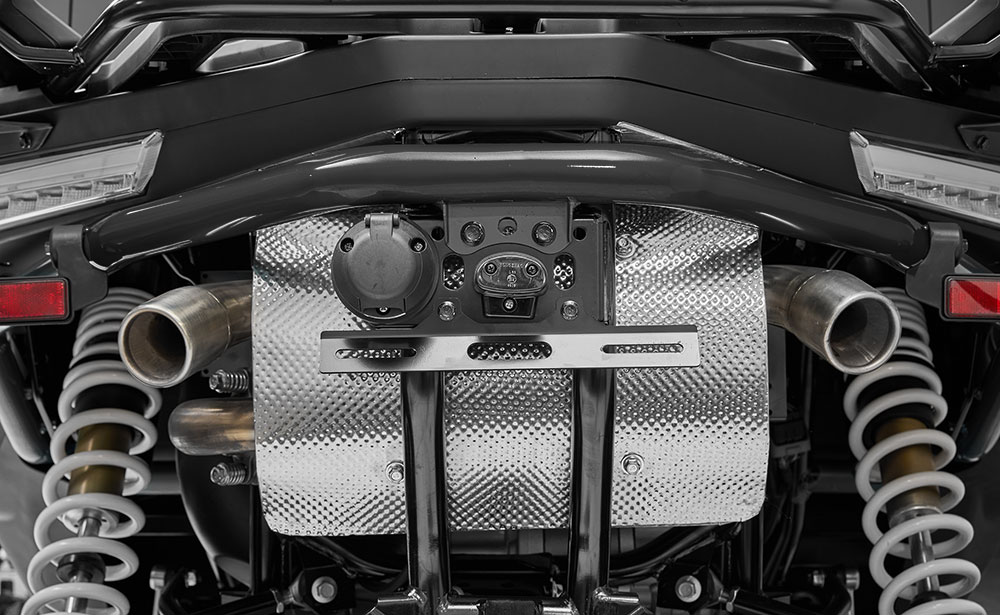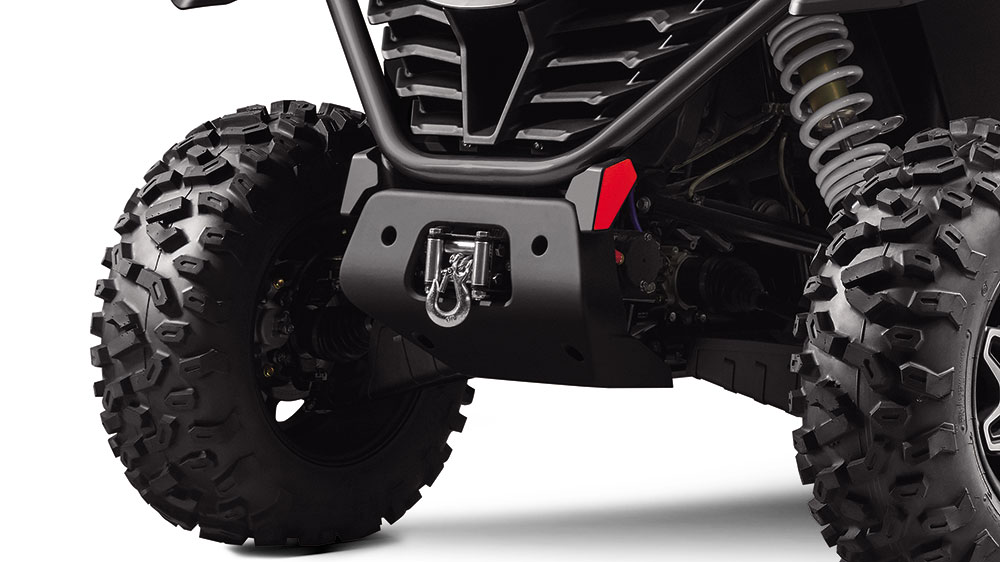 En lo que respecta a su equipamiento para el desempeño off road, cuenta con un malacate delantero de 3.500 libras y en la parte trasera una bocha de remolque con instalación eléctrica para trailers. Lleva faros frontales con tecnología LED, espejos retrovisores y techo. Las cubiertas de 29 pulgadas están montadas sobre llantas de aleación de 14 pulgadas.