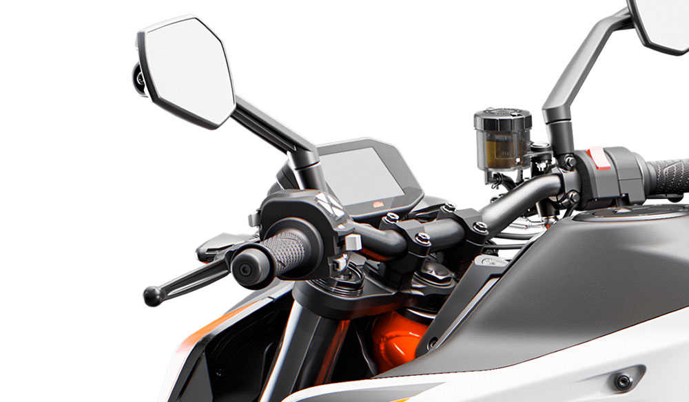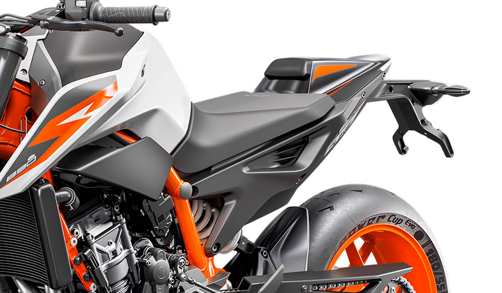 KTM garantiza una sensación más picante en la 890, desde el manillar, los asientos y hasta los estribos, la KTM 890 Duke R ofrece todo lo que uno puede esperar de una “R” de KTM.