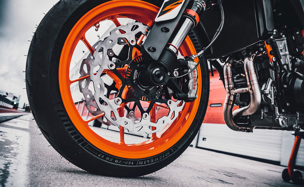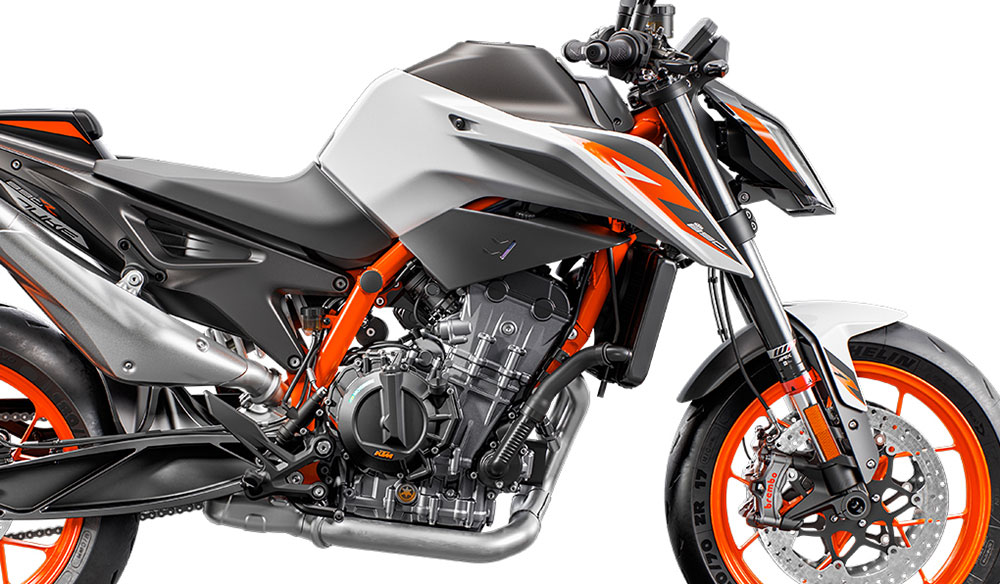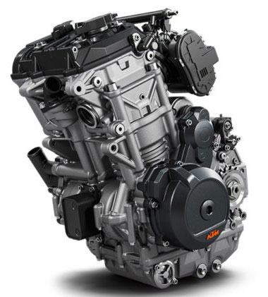 Se utilizó como base para esta 890 el bicilíndrico paralelo que actualmente lleva la 790 Duke. El aumento de cilindrada y su relación de compresión más alta es lo que le posibilita elevar el régimen de las RPM, lo que hace que la KTM 890 Duke R entregue 121 hp de potencia máxima y unos 99 Nm de torque en relación con los 89 hp y 82.3 Nm de la 790.