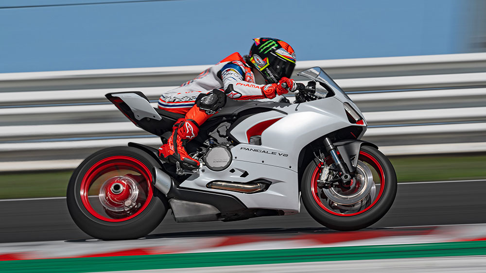 El piloto del Pramac Racing Team, Francesco «Pecco» Bagnaia, fue el encargado de probar la moto en el Circuito Mundial de Misano «Marco Simoncelli», quien aseguró: “Desde 2016, mi lema personal ha sido #GoFree. Para mí significa vivir de forma alegre y despreocupada, divertirse y dar prioridad a las cosas que te gusta hacer. Creo que la Panigale V2 encaja bien con esta definición y refleja mi forma de ser. La nueva decoración, tan blanca, es muy bonita y diferente a la conocida. A pesar de tratarse de una moto de calle, me sorprendió la velocidad que toma en las curvas. Es una moto divertida, muy estable y noble, que te permite ir rápido, seguro, sin cansarte, a la vez que tiene un carácter y personalidad muy fuertes y decisivos».