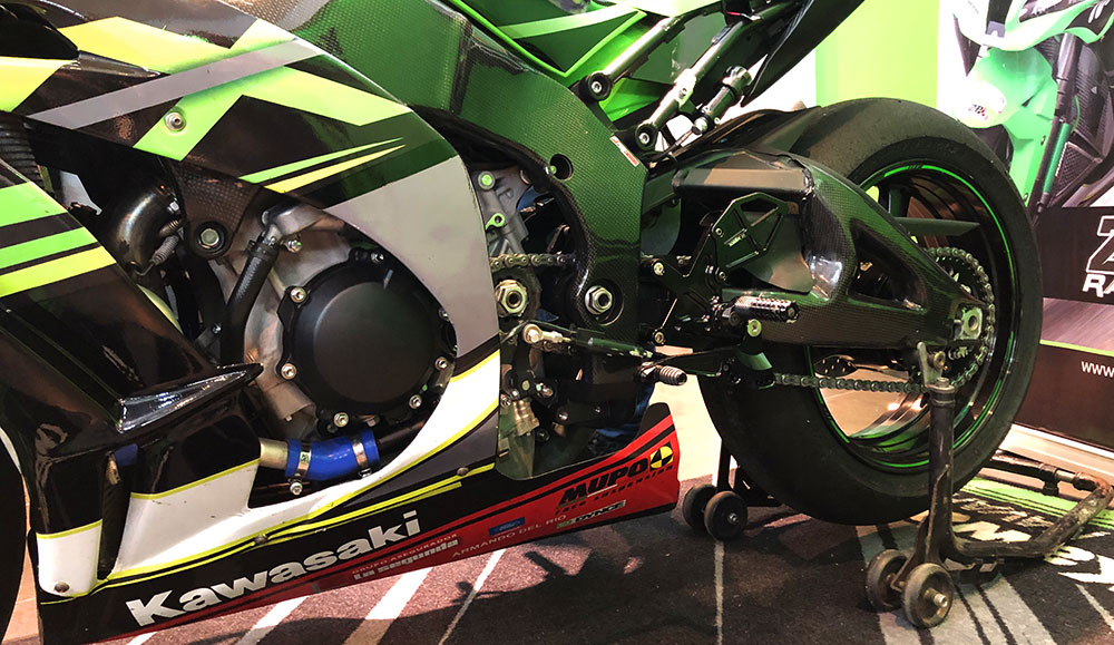 Otra modificación es la suspensión, que es de competición, completamente regulable. Se aliviana toda la moto para reducir el peso y ello sumado al incremento de potencia, genera la mejor relación peso / potencia para el circuito. Cuentan asimismo con cubiertas especiales para circuito; el shifter si bien tiene el de fábrica, se lo trabaja para poder pasar los cambios más rápido; el escape es también específico; se coloca un radiador adicional para que no caliente porque el motor levanta mucha temperatura.