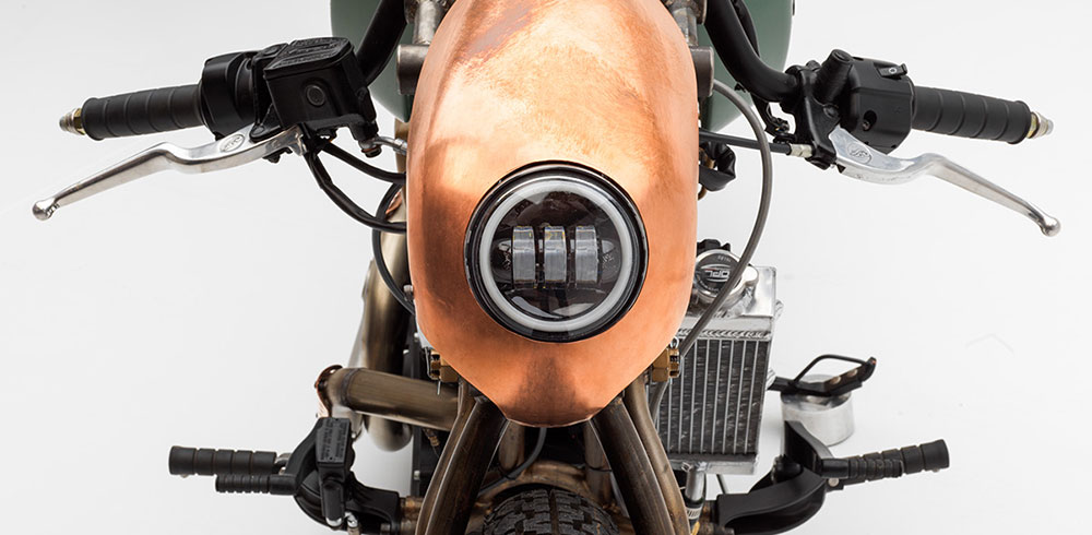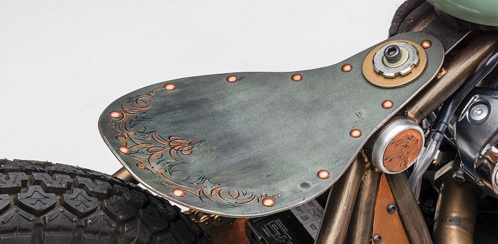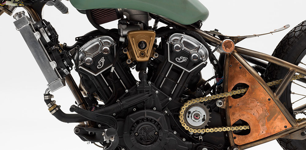 En qué consistió su trabajo. En primer lugar, y partiendo de la base de una Scout Bobber, Fred modificó completamente el chasis y la estructura de la moto, transformándolo en un “hardtail” sin suspensión trasera, mientras que la delantera fue reemplazada por un sistema de paralelogramos.
