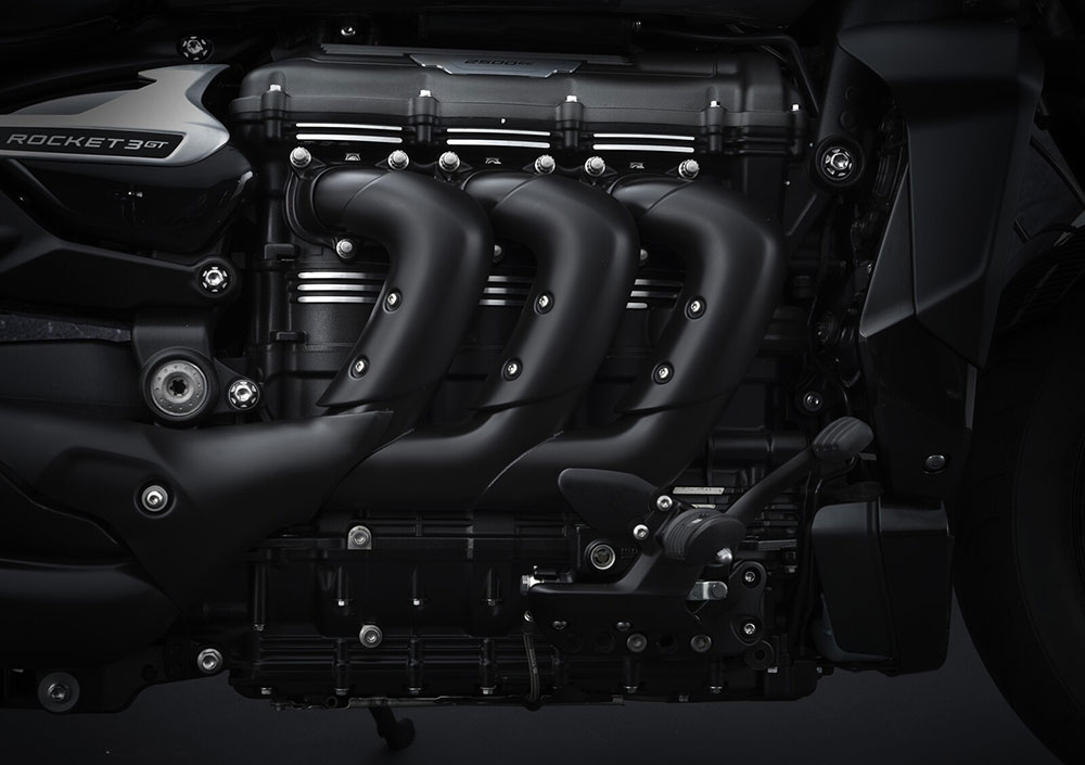 El motor es el conocido, y enorme, tricilíndrico en línea de 2500 cc y 167 hp de potencia y 221Nm de torque, pintado en color negro por supuesto. El resto de la serie Triumph Rocket 3 también sigue siendo la misma. La suspensión es Showa con frenos Brembo en ambos extremos. El paquete electrónico de la Triumph Rocket 3 incluye una pantalla TFT habilitada para Bluetooth, IMU de seis ejes, ABS en curvas, control de tracción para curvas, cuatro modos de conducción (Road, Rain, Sport y Rider-configurable), control de crucero, control de retención de colinas e ignición sin llave. La nueva Triumph Rocket 3 GT también cuenta con puños calefactables de serie.